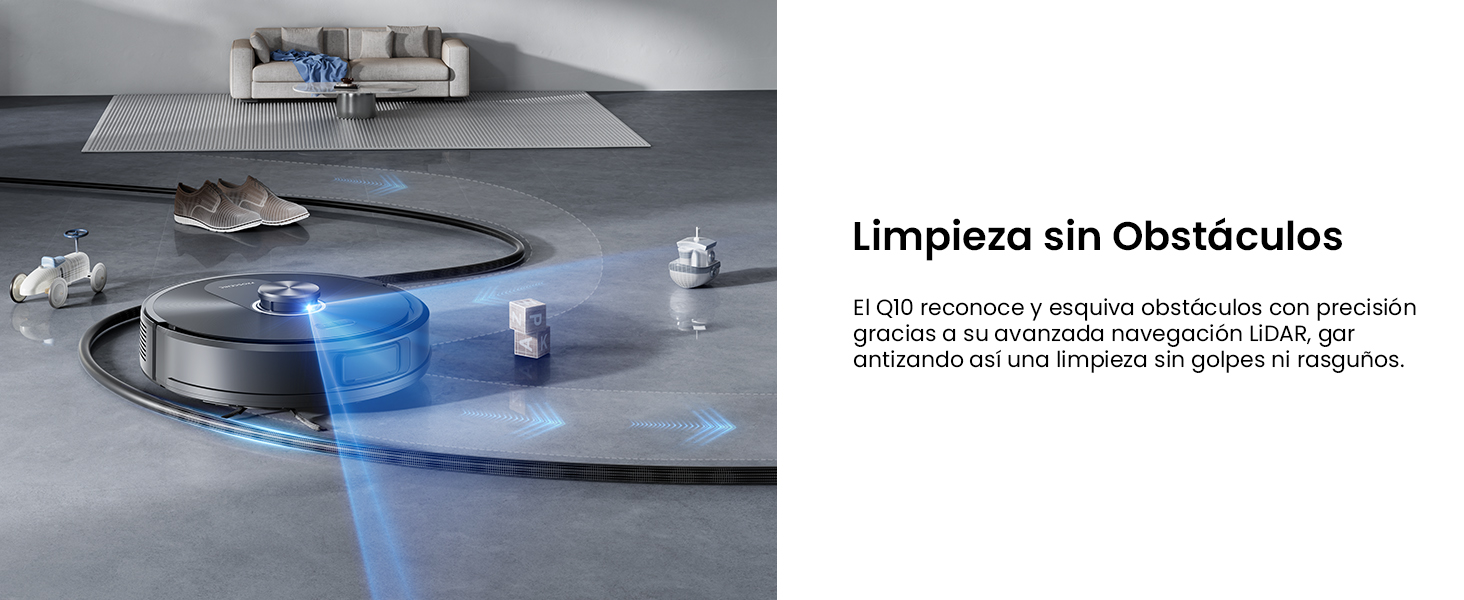 Mapea la casa en tiempo récord (hasta 3 veces más rápido) y con mayor precisión. Detecta objetos pequeños y evita choques constantes, trabajando de forma ordenada y sin dejarse zonas sin limpiar.