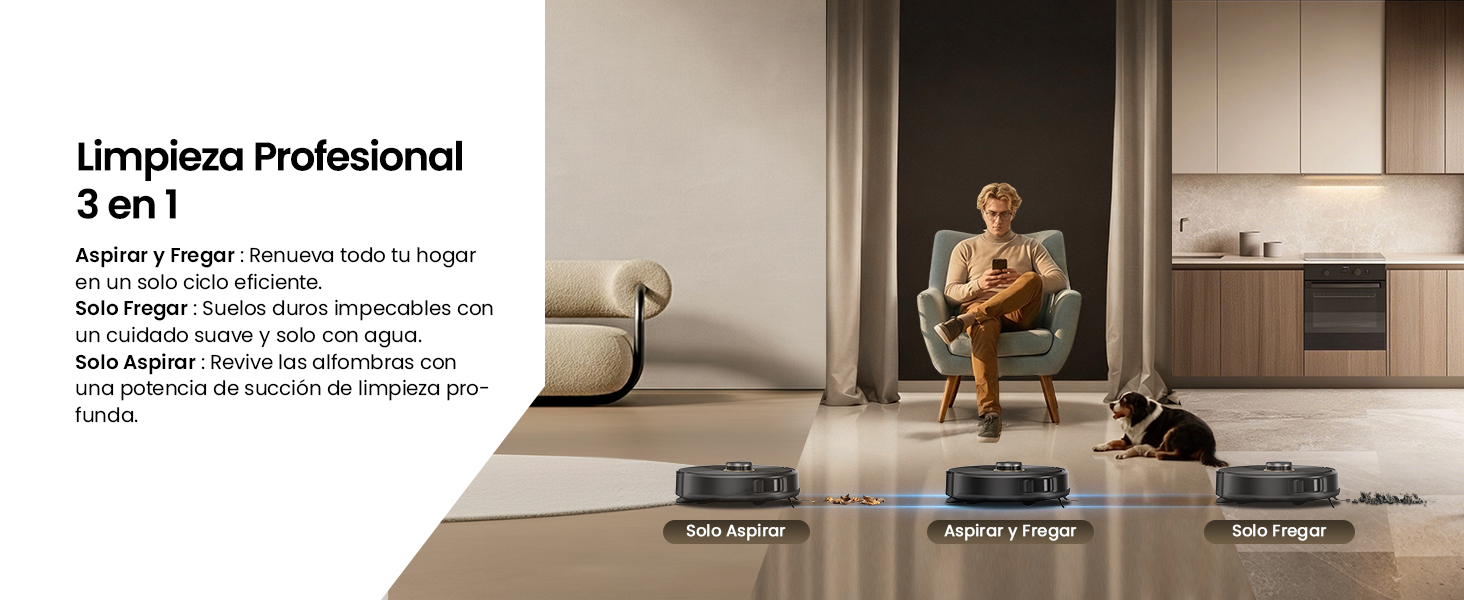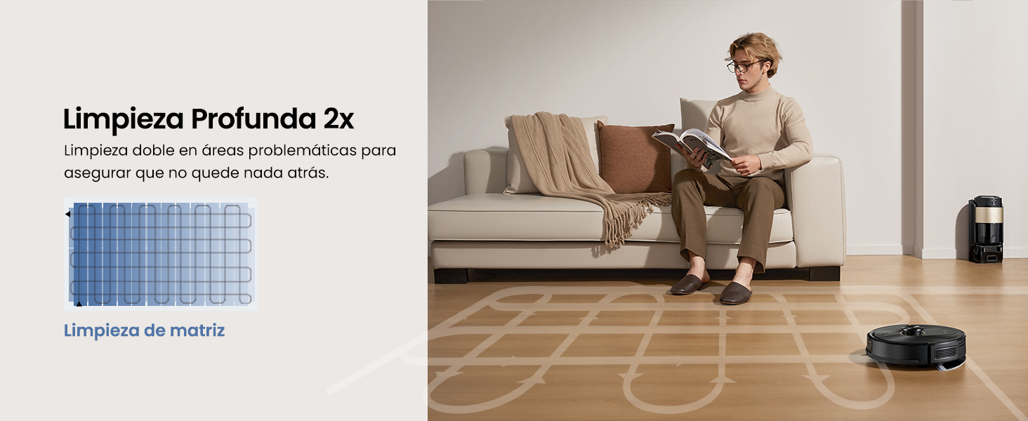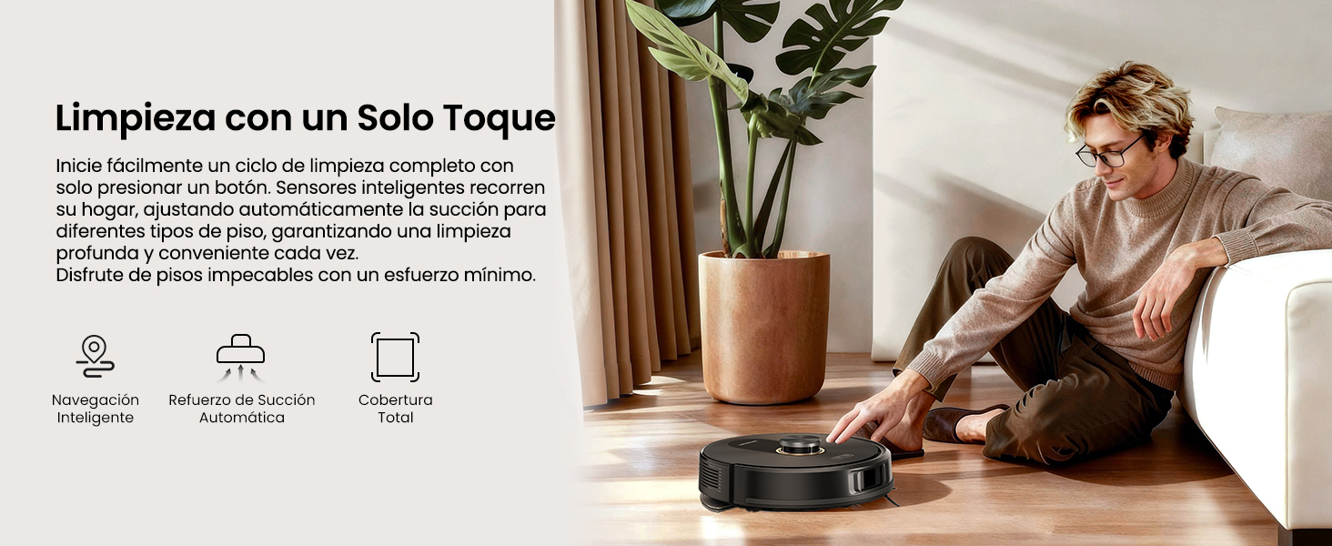 No solo barre, desincrusta. Con una succión de 6000 Pa, es hasta 3 veces más potente que los robots estándar de su rango de precio. Ideal para hogares con mascotas y alfombras donde la suciedad se esconde profundamente.